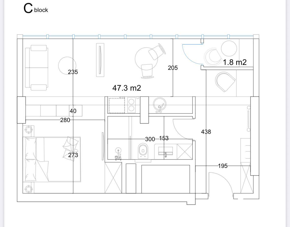 Площадь 47.3 м2