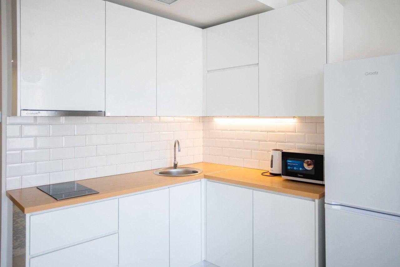 ✔️есть вся необходимая мебель и техника( большой холодильник,духовой шкаф и плита,вытяжка,стиральная машина,чайник,утюг),а также посуда и текстиль.