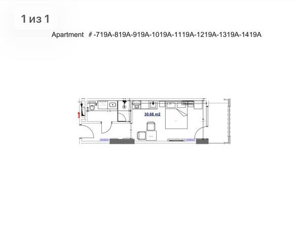 Площадь студии составляет 30.68 м². Квартира предлагается в состоянии «каркас», что позволяет будущему владельцу реализовать индивидуальный дизайн и создать пространство под свои цели — будь то комфортное проживание или сдача в аренду.